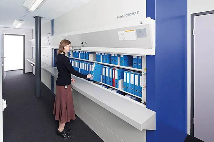 Hanel is the first manufacture in Europe designed filing system according to the Ferris Wheel Principle (Vertical Carousel System) which means Rotomat bring the required file or media to the ergonomically designed retrieval point at the touch panel. Today we are one of the leading suppliers worldwide in our industry. Due to the constant development of our products and software we have today offer solutions for the requirements of tomorrow. With all the progress of environmental responsibility, Hanel developed the first provider in the vertical lift technology with the EcoDrive® a system in which the energy of the descending extractor is converted back into electrical energy and delivered to the power grid. This is also a contribution to saving energy and protecting the environment. We are efficient in ergonomic and space-saving storage solutions for your intra-logistics and office organization develop.